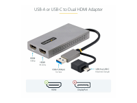 Startech USB to Dual HDMI Adapter, USB A/C to 2x HDMI Monitors (1x 4K 30Hz, 1x 1080p), Integrated USB-A to C Dongle, 4in/11cm Cable, Windows & macOS